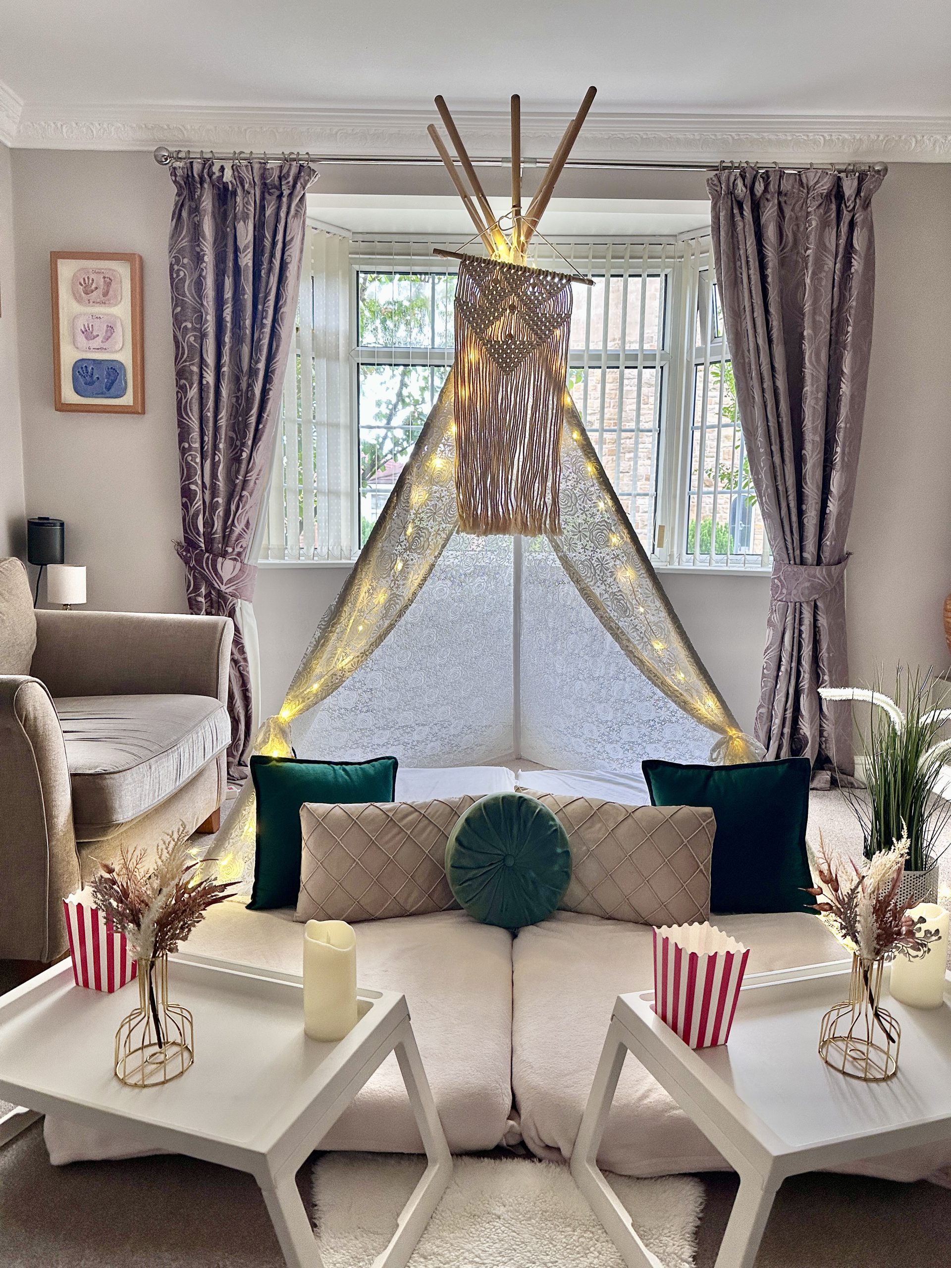 Each exquisitely styled setup features a plush mattress, cosy blanket, luxury cushions, soft twinkling fairy lights, a breakfast tray, popcorn holder and beautifully curated themed décor — every detail thoughtfully designed to impress.
